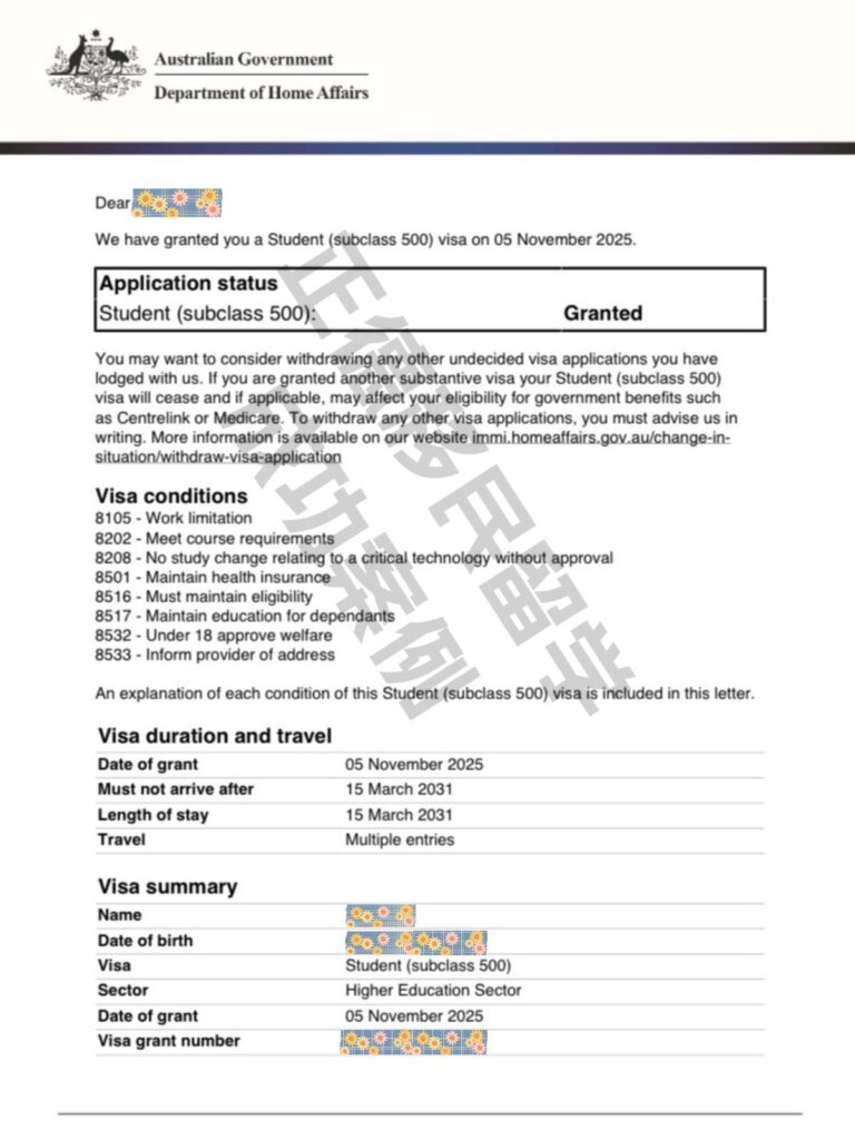 直到10月开课,签证还没有批。因为现在澳洲八大全都是优先级2级了,签证审理都不着急,慢慢拖着。